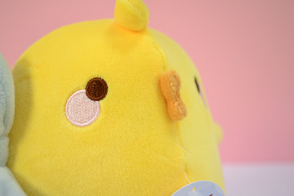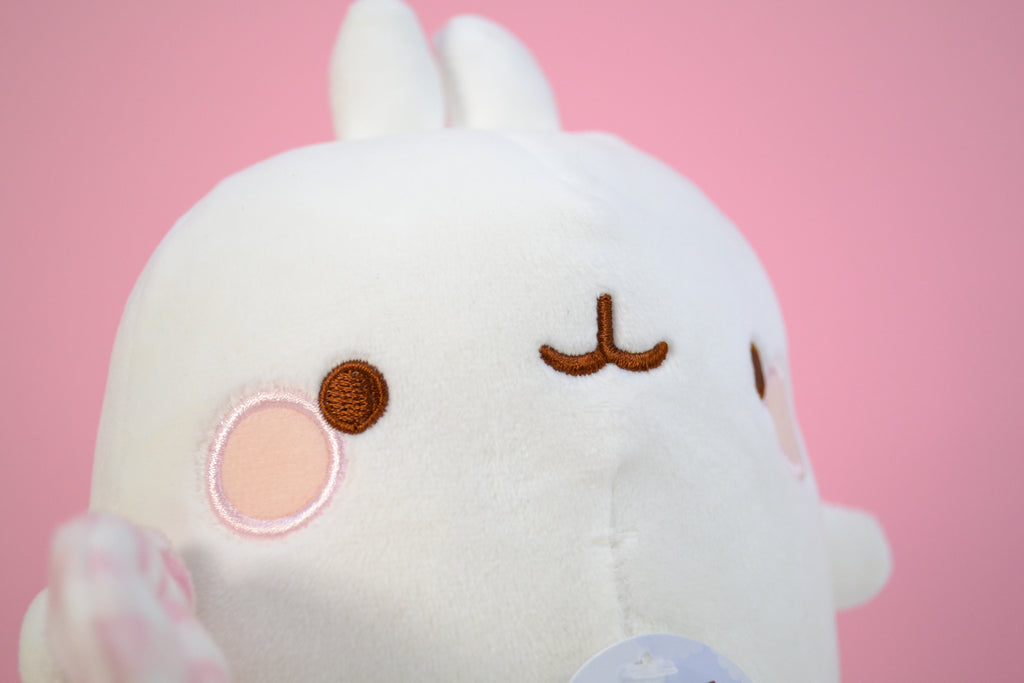 Ihr sucht noch nach einem Spielzeug für euer Kind oder ihr sucht einfach nur nach etwas suuuuuuuper süßen Merch von Molang? Dann kommt hier Molang und PiuPiu, die liebenswerte Charaktere aus der gleichnamigen TV-Serie und bekannt aus Social Media, als besonders weiches und kuscheliges Babyplüschtier. Sein super softes, hochwertiges Material mit fluffiger und flauschiger Füllung ist sanft und hat die perfekte Größe von 20cm für anschmiegsames Kuscheln und Spielen auch mit den Allerkleinsten Fans der Serie. Molang und PiuPiu verzaubern durch ihre niedlichen Gesichter, das ganz viel Liebe ausstrahlt, mit ihren Mini-Schmusetüchern, das zum Festhalten und Fühlen einlädt, mit einer kleinen Erdbeere oder Zitrone, als super süßes Designelement, zu eurem Wohlbefinden bei!