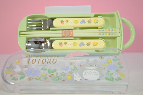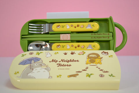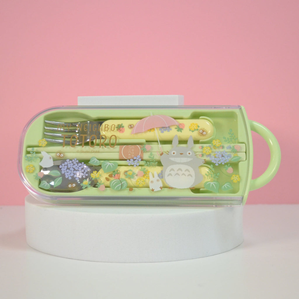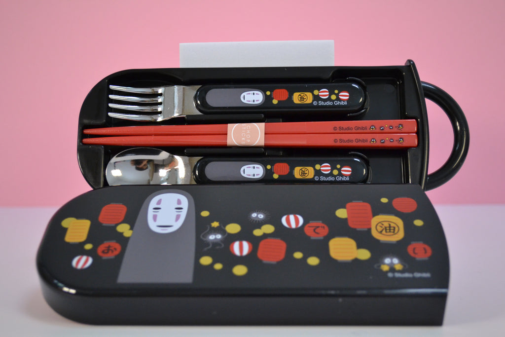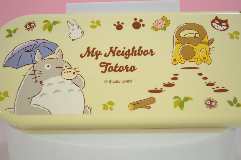 Dieses original Studio Ghibli Travelcase mit Stäbchen, Löffel und Gabel sind mit ihrem zuckersüßem Studio Ghibli Motiven und den fröhlichen Farben nicht nur ein absoluter Hingucker sondern auch noch ein sehr nützlicher Begleiter für unterwegs! Mit Ihnen hast du immer das nötige Besteck zur Hand für verschiedenste Leckereien! Besonders praktisch ist die Box in die du dein Besteck nach dem Essen wieder sicher und sauber verstauen kannst. Wenn du gerade nichts zur Hand hast um deine Besteck nach dem Essen zu reinigen, kannst du sie zurück in die Aufbewahrungsdose schieben und dann wieder zurück in deine Tasche ohne dabei den Tascheninhalt zu beschmutzen! Bei so einem süßen Stäbchen freut man sich doch direkt viel mehr auf die nächste Essenspause und dann schmeckts auch besser! <3