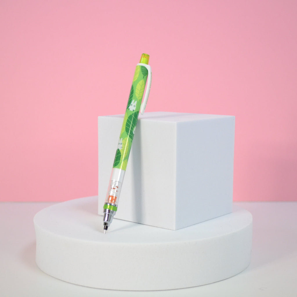 Wunderschöner Druckbleistift mit Radiergummi kommt im schönen Grüntönen und dem süßen weißen Chibi Totoro zu dir. Dieser hochwertige Druckbleistift aus dem Haus Kuru Toga hat eine autorotierende Spitze, die es dir ermöglicht klare Linien mit gleichbleibender Strichstärke spielend leicht zu führen! Die Rotation ist doppelt so schnell wie bei herkömmlichen Rotationsstiften und sorgt für noch schnelleres und besseres Anspitzen der Miene. Außerdem ist die Miene vorne durch eine eingebaute Spezialummantelung extra geschützt vor schnellem Abbrechen!
