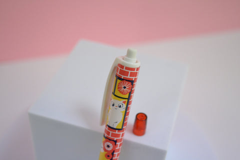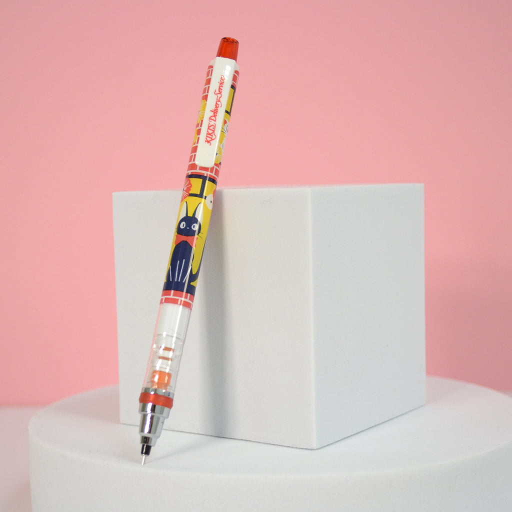 Wunderschöner Druckbleistift mit Radiergummi kommt im schönen Rot und Gelbtönen und mit Jiji, auf dem Stift abgebildet, zu dir. Dieser hochwertige Druckbleistift aus dem Haus Kuru Toga hat eine autorotierende Spitze, die es dir ermöglicht klare Linien mit gleichbleibender Strichstärke spielend leicht zu führen! Die Rotation ist doppelt so schnell wie bei herkömmlichen Rotationsstiften und sorgt für noch schnelleres und besseres Anspitzen der Miene. Außerdem ist die Miene vorne durch eine eingebaute Spezialummantelung extra geschützt vor schnellem Abbrechen!