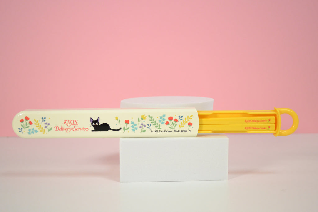 Diese original Studio Ghibli Stäbchen mit Travelcase sind mit ihrem zuckersüßem Jiji und Blumen Muster, nicht nur ein absoluter Hingucker sondern auch noch ein sehr nützlicher Begleiter für unterwegs! Mit Ihnen hast du immer einmal Besteck zur Hand für verschiedenste Leckereien! Besonders praktisch ist die Box in die du deine Stäbchen nach dem Essen wieder sicher und sauber verstauen kannst. Wenn du gerade nichts zur Hand hast um deine Stäbchen nach dem Essen zu reinigen, kannst du sie zurück in die Aufbewahrungsdose legen und dann wieder zurück in deine Tasche ohne dabei den Tascheninhalt zu beschmutzen! Bei so süßen Stäbchen freut man sich doch direkt viel mehr auf die nächste Mittagspause und dann schmeckts auch besser! <3